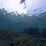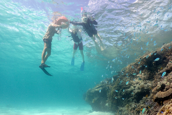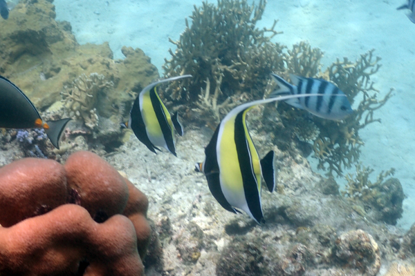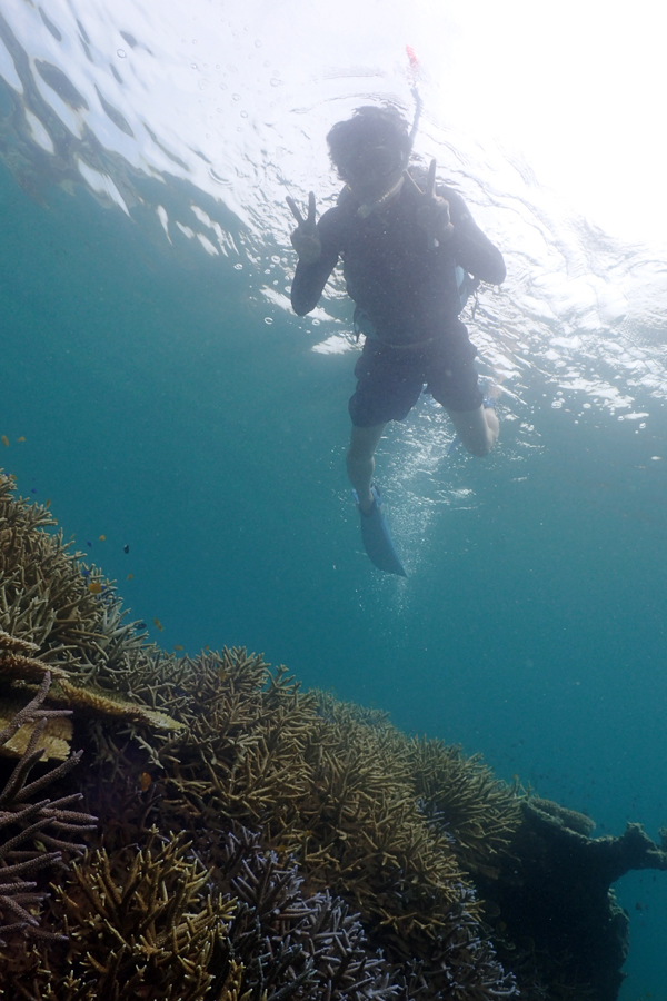 干潮の潮止まりを狙っていたので、サンゴや魚が手の届くところで泳げるくらい潮が引いていて