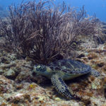 お待ちかねのウミガメ探しに行ってみると、ちょうどカメが寝床に戻ってきたところでした♪