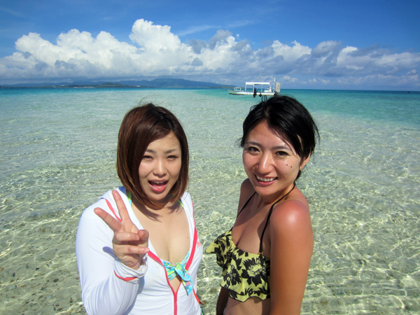 この楽園のような無人島に来ると、だれもがテンション急上昇〜↗↗