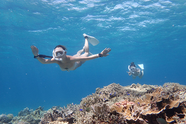 潜るからこそ見ることができる水中の景色を見たり、いろいろな生物との出会い、透明度の良い海を空を飛ぶように泳ぐような感覚を楽しみましょう!